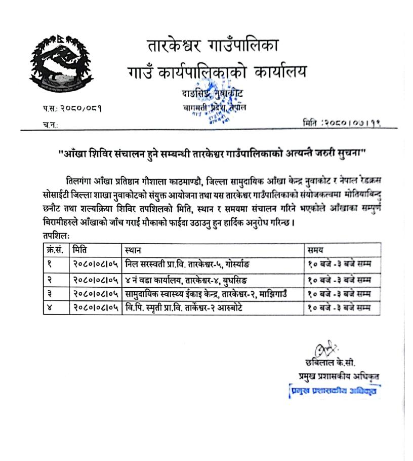 आखाँ शिविर संचालन हुने सम्बन्धी सूचना