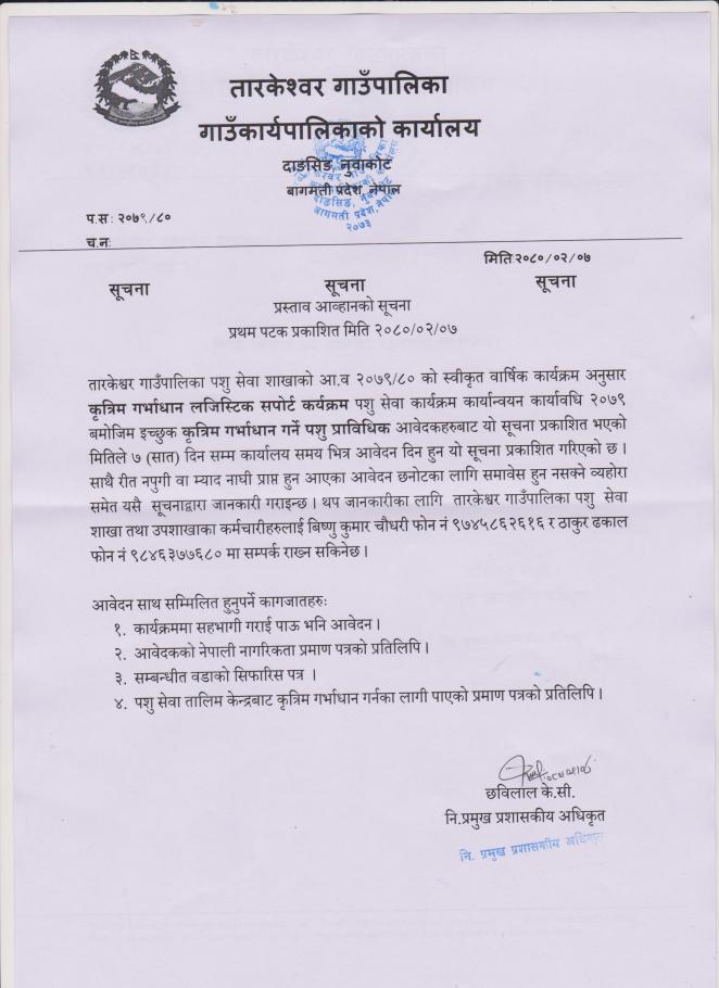कृत्रिम गर्भाधान लजिस्टिक सपोर्ट कार्यक्रम सम्बन्धि सूचना