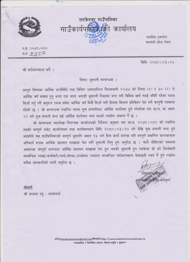 भुक्तानी सम्बन्धमा