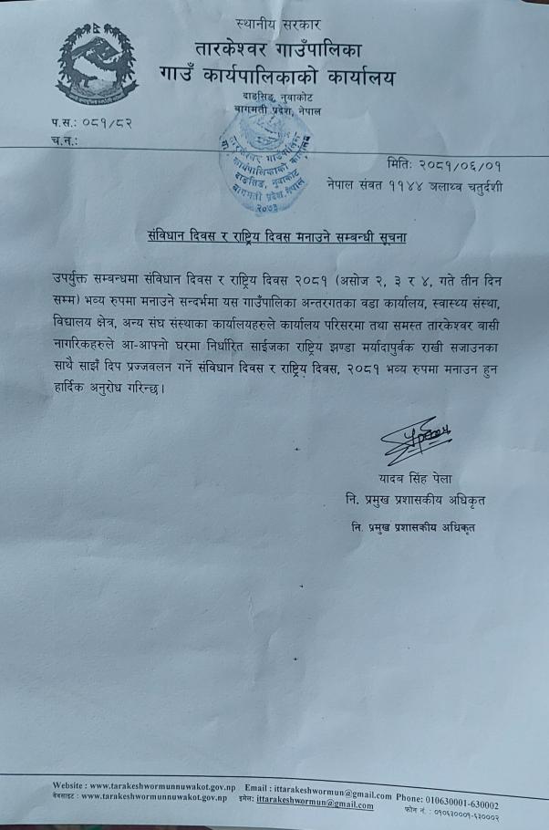 संविधान दिवस र राष्ट्रिय दिवस मनाउने सम्बन्धी सूचना