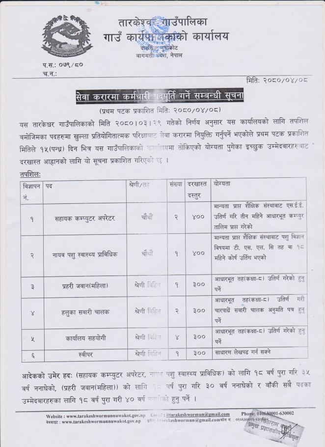 सेवा करारमा कर्मचारी पदपुर्ती गर्ने सम्बन्धी सुचना